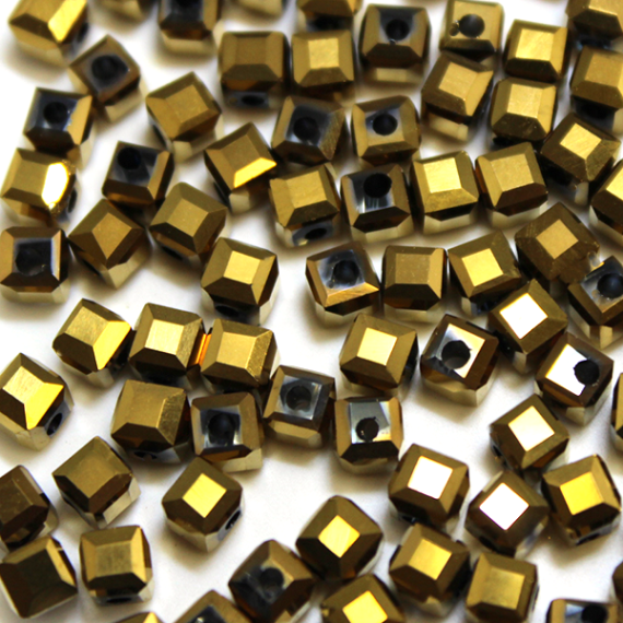 Krimp Кубик 4х4мм хрустальное стекло 45шт Золото металлик