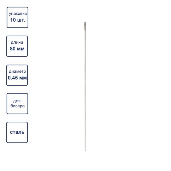 Используются для работы с любыми видами нитей и бисером с отверстием не менее 0,45 мм. Длина иглы - 80 мм.