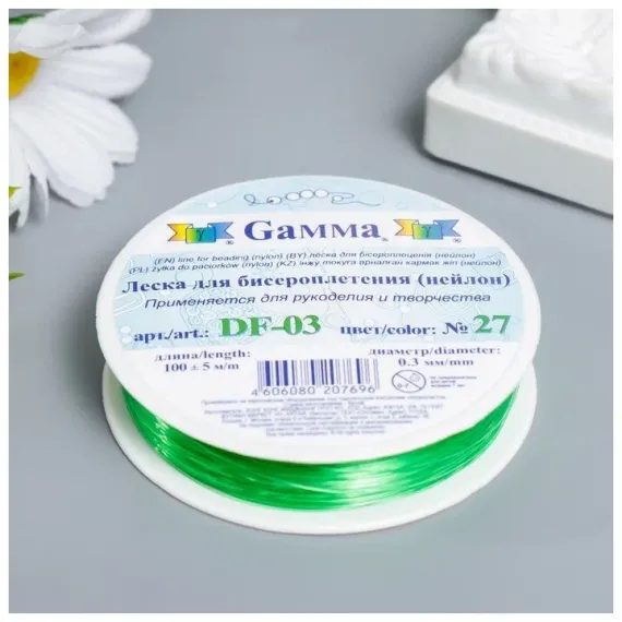 Gamma Леска для бисероплетения DF-03 d0.3мм 100м №27 Зеленый