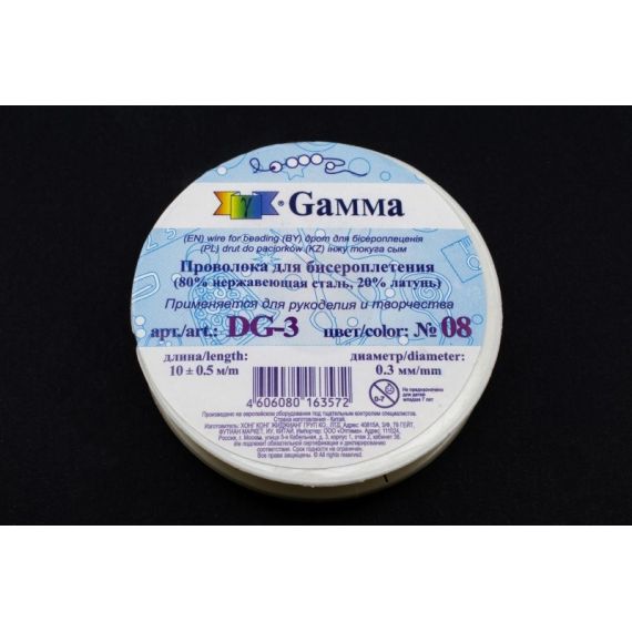 Проволока для бисера "Gamma" DG-3 d 0.3 мм .Искусство изготовления поделок из проволоки в наши дни переживает второе рождение. С помощью данной техники можно создавать не только такие украшения как браслеты, бусы, колье и серьги, но и различные по форме и сложности броши, а также композиции для декора интерьера: проволочные деревья, фигурки животных, цветочные букеты из бисера и др. Важно! Диаметр проволоки позволяет продевать ее сквозь бисер и бусину три раза и более, в то же время обладает достаточной прочностью, чтобы не провисать под тяжестью бисера.