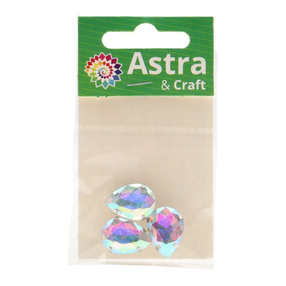 Astra&Craft Стразы хрустальные в цапах капля 13х18мм Белый с покрытием 3шт