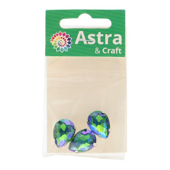 Astra&Craft Стразы хрустальные в цапах капля 13х18мм Зеленый с покрытием 3шт