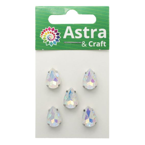 Astra&Craft Стразы хрустальные в цапах капля серебро 10х14мм Белый с покрытием AB 5шт