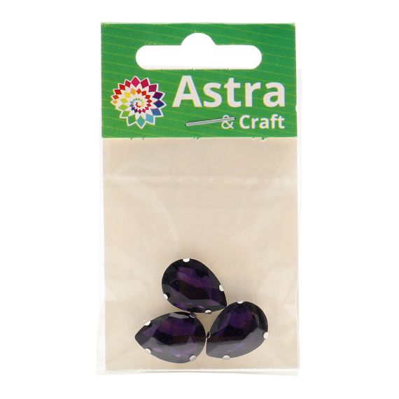 Astra&Craft Стразы хрустальные в цапах капля серебро 13х18мм Фиолетовый 3шт