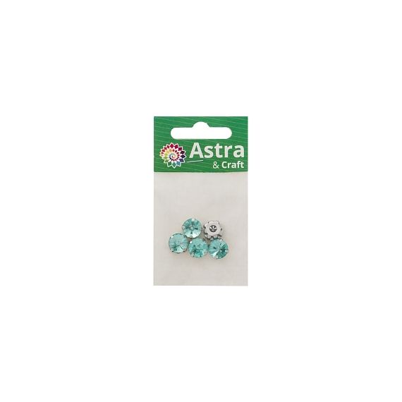 Astra&Craft Стразы хрустальные в цапах круглые риволи 10мм Бирюзовый 5шт