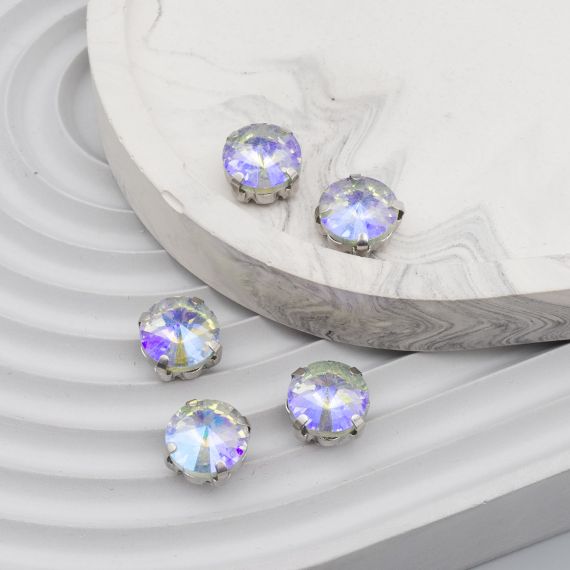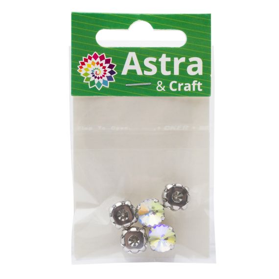 Astra&Craft Стразы хрустальные в цапах круглые серебро 10мм Белый c внутренним покрытием AB 5шт