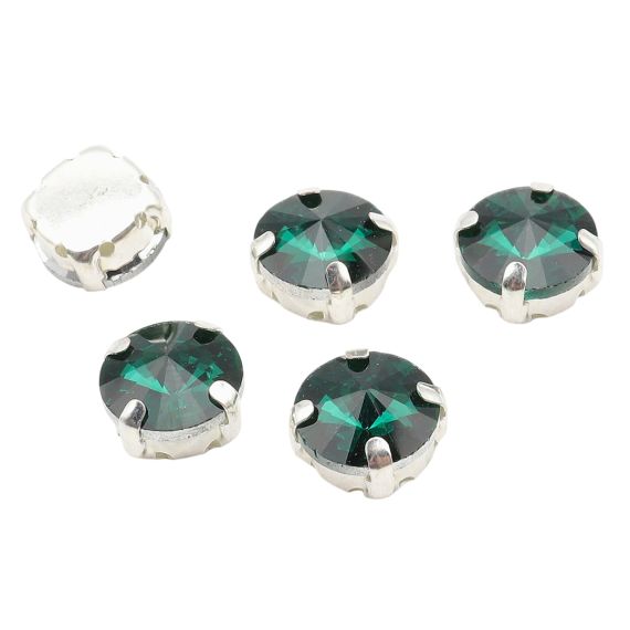 Astra&Craft Стразы хрустальные в цапах круглые серебро 10мм Изумрудный 5шт