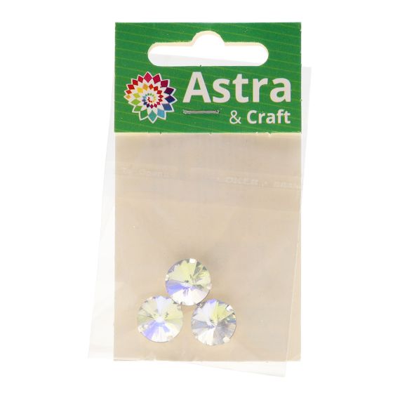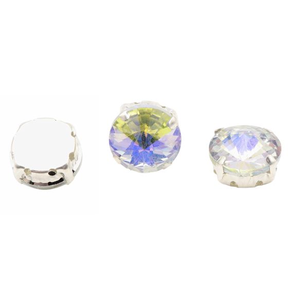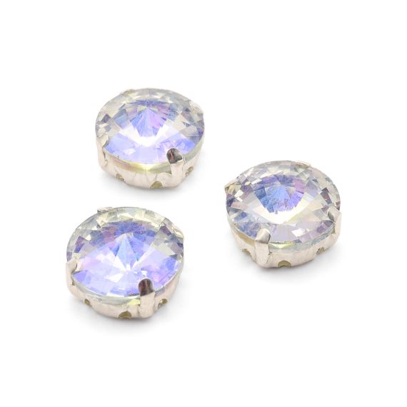 Astra&Craft Стразы хрустальные в цапах круглые серебро 12мм Белый c внутренним покрытием AB 3шт