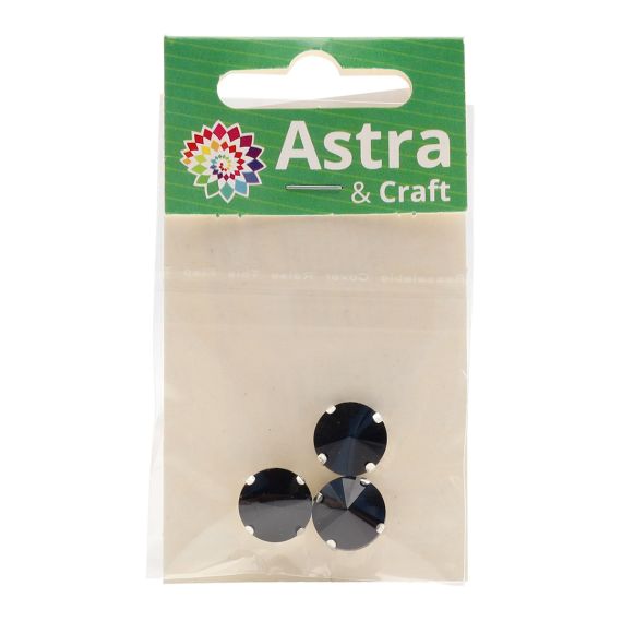 Astra&Craft Стразы хрустальные в цапах круглые серебро 12мм Черный 3шт