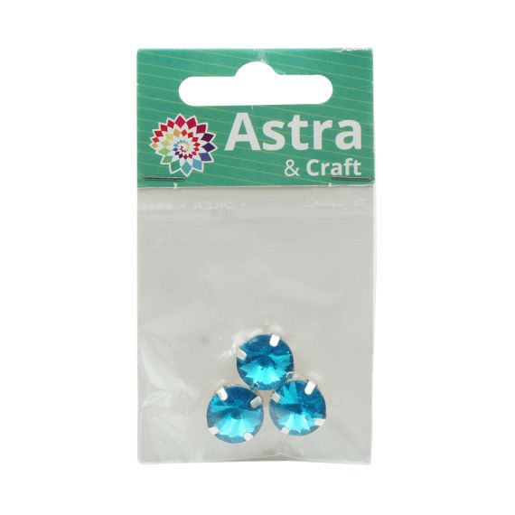 Astra&Craft Стразы хрустальные в цапах круглые серебро 12мм Голубой 3шт