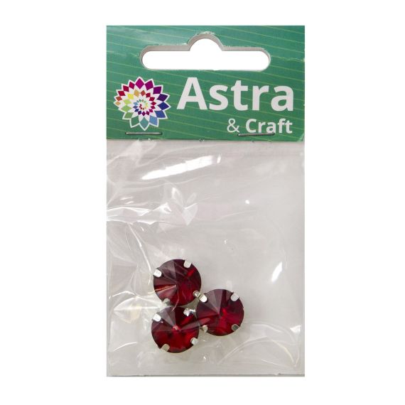 Astra&Craft Стразы хрустальные в цапах круглые серебро 12мм Красный 3шт