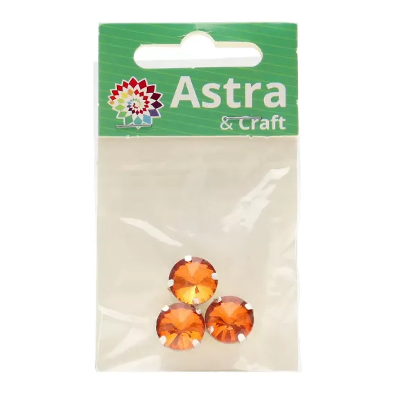 Astra&Craft Стразы хрустальные в цапах круглые серебро 12мм Рыжий 3шт