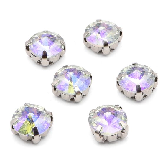 Astra&Craft Стразы хрустальные в цапах круглые серебро 8мм Белый c внутренним покрытием AB 10шт
