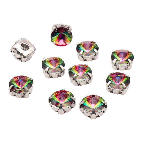Astra&Craft Стразы хрустальные в цапах круглые серебро 8мм Радужный 10шт
