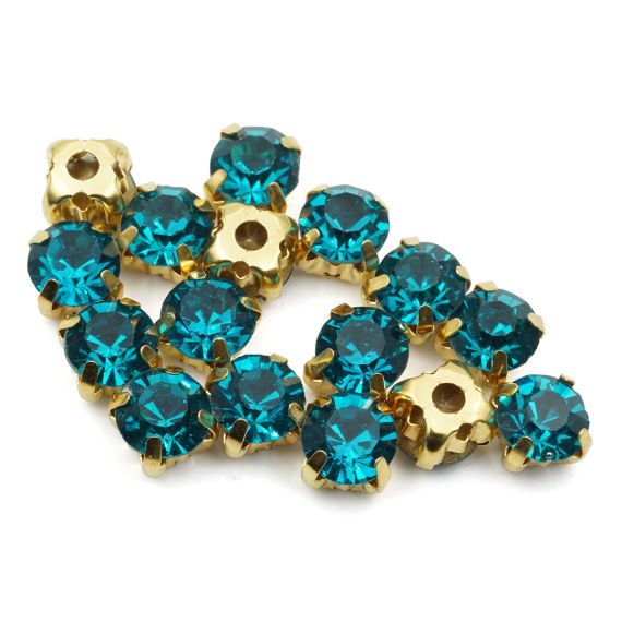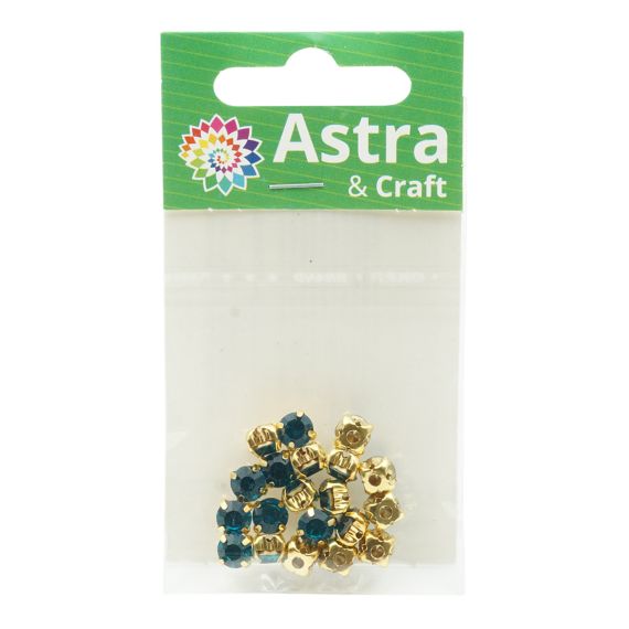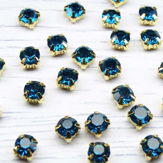 Astra&Craft Стразы хрустальные в цапах круглые золото 6х6мм Лазурный