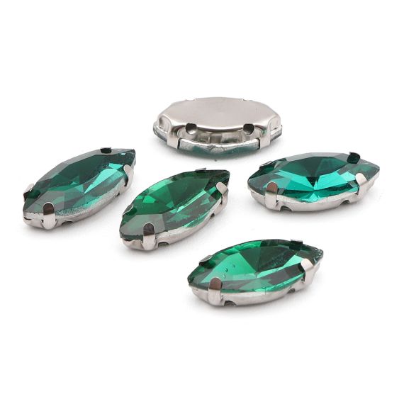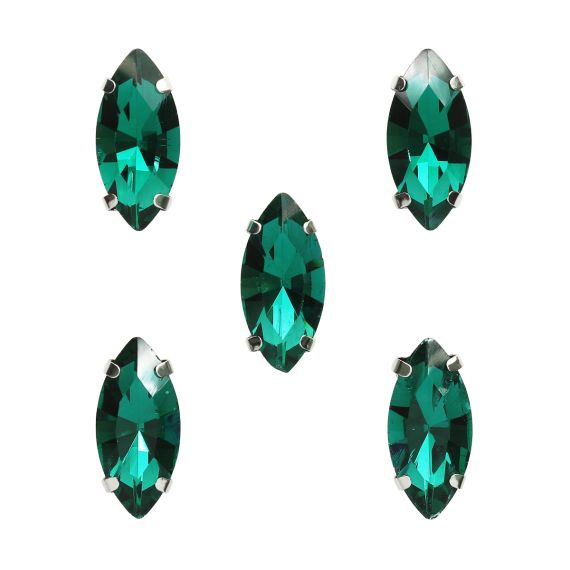 Astra&Craft Стразы хрустальные в цапах миндаль серебро 7х15мм Изумрудный 5шт