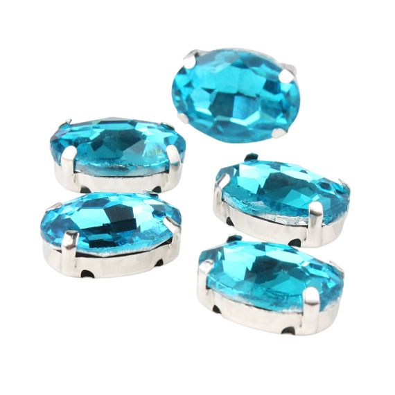 Astra&Craft Стразы хрустальные в цапах овальные серебро 10х14мм Голубой 5шт