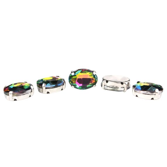Astra&Craft Стразы хрустальные в цапах овальные серебро 10х14мм Радужный 5шт
