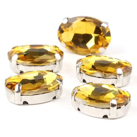 Astra&Craft Стразы хрустальные в цапах овальные серебро 10х14мм Желтый 5шт