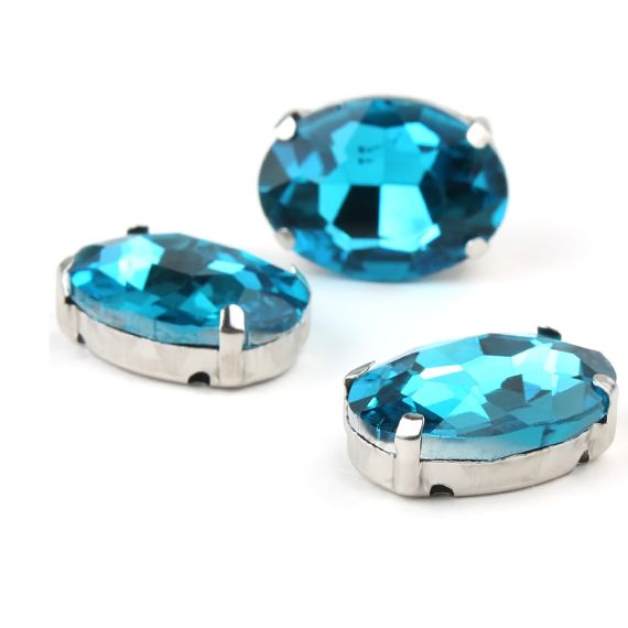 Astra&Craft Стразы хрустальные в цапах овальные серебро 13х18мм Голубой 3шт