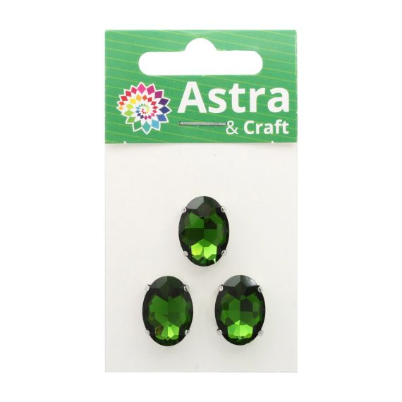 Astra&Craft Стразы хрустальные в цапах овальные серебро 13х18мм Зеленый 3шт