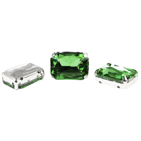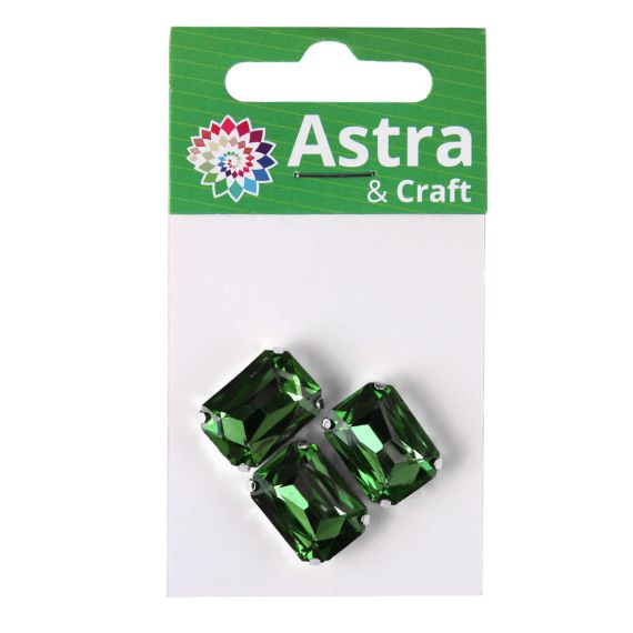 Astra&Craft Стразы хрустальные в цапах прямоугольные серебро 13х18мм Изумрудный 3шт