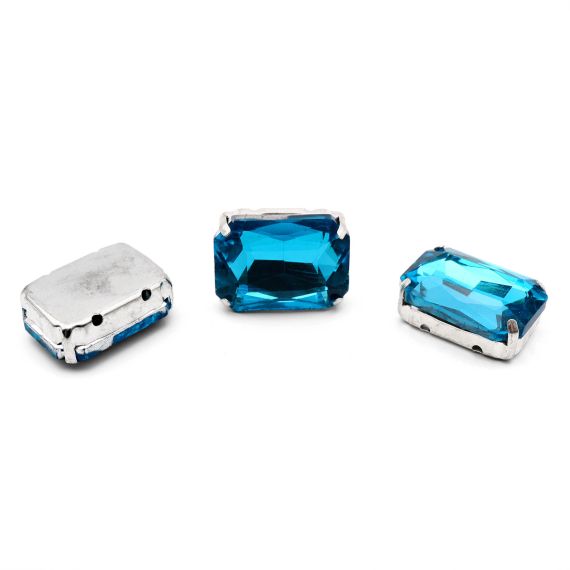 Astra&Craft Стразы хрустальные в цапах прямоугольные серебро 13х18мм Ярко-голубой 3шт
