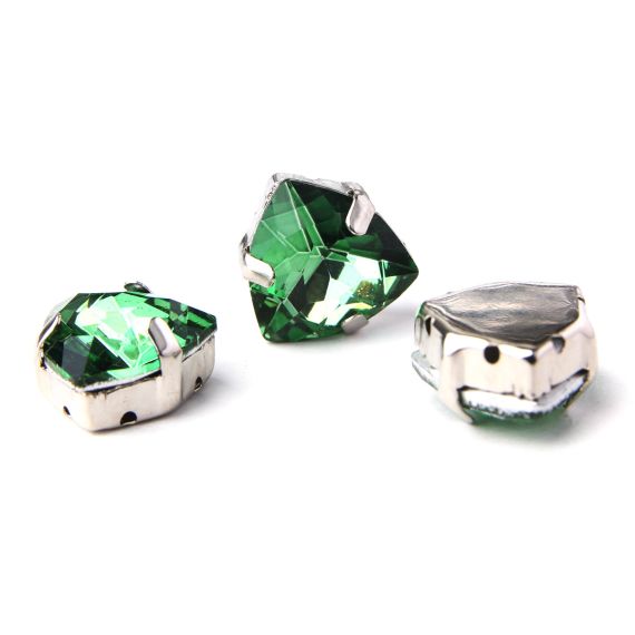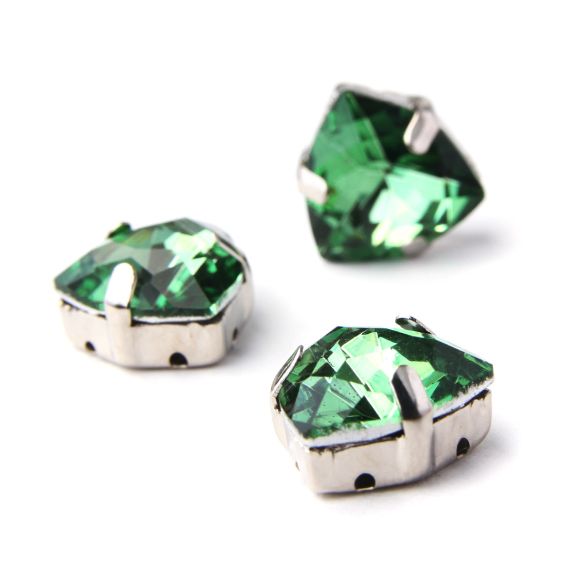 Astra&Craft Стразы хрустальные в цапах шестиугольные серебро 12мм Изумрудный 3шт