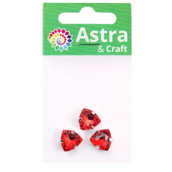 Astra&Craft Стразы хрустальные в цапах шестиугольные серебро 12мм Красный 3шт