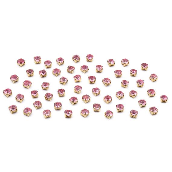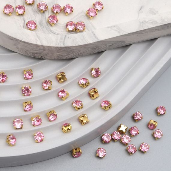 Золотистые цапы служат оправой: они закрывают стразы с обратной стороны, слегка обрамляют их снаружи и придают граненому камню дополнительное сияние.