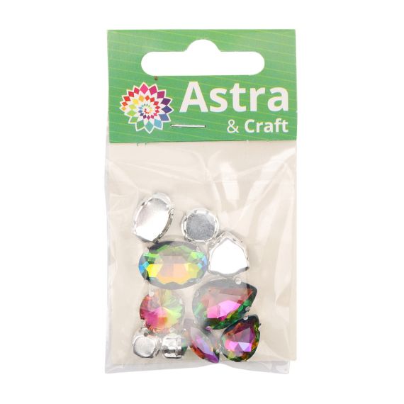 Astra&Craft Стразы хрустальные в металических цапах микс Радужный 10шт