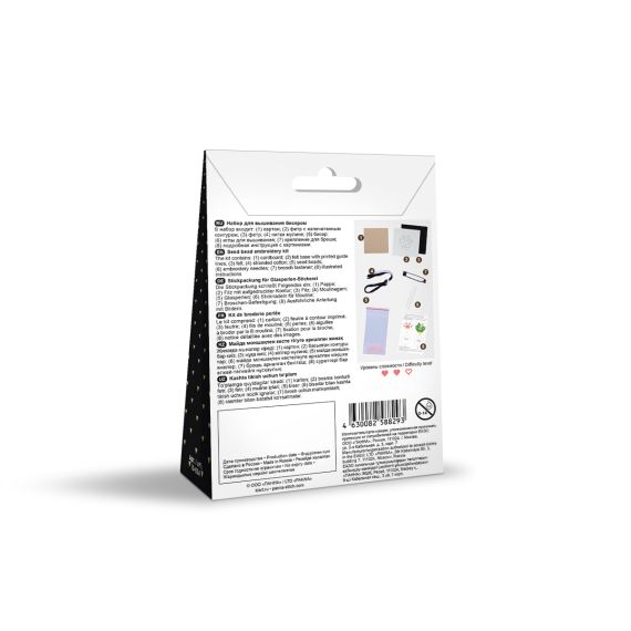 В набор для вышивания Klart входит: фетр с напечатанным контуром, фетр, бисер, хлопчатобумажные нитки мулине Gamma, тонкая игла для вышивания бисером Gamma, замок для броши, картонная заготовка, подробная инструкция с цветными иллюстрациями.