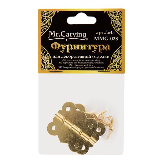 "Mr. Carving" Соединительные петли MMG-023 для двух деталей коробки, сундучка, футляра, нард и пр. Устанавливаются при помощи шурупов или гвоздиков, которые входят в набор.