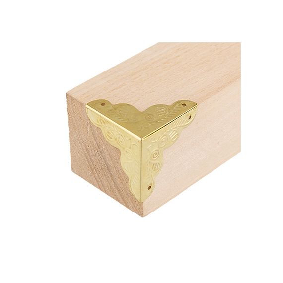 "Mr. Carving" Накладные декоративные элементы в форме уголка MMG-005. Применяются для декора 4-х углов коробок, сундучков, футляров, комодиков и других предметов интерьера Устанавливаются при помощи декоративных гвоздиков, которые входят в набор.