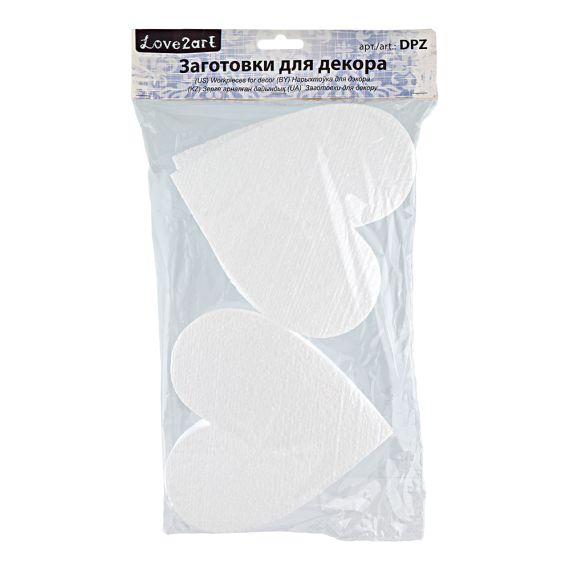 Love2art Заготовка пенополистирол DPZ-25 15х2х15см 01 Сердечки 150мм 4шт