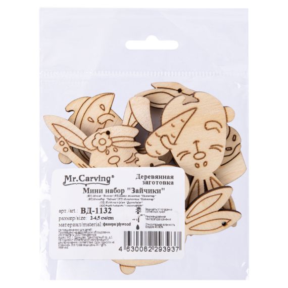 "Mr. Carving" ВД-1132 Мини набор "Зайчики". Деревянные заготовки изготовлены из фанеры высокого качества.