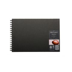 Блокнот для рисования  Fabriano в твердом переплете, 60 листов, 160 г/м2. Моющаяся черная твердая обложка со спиральным переплетом или без различных форматов. Идеально подходит для карандаша, туши, пастели, пера и гуаши. Бескислотная бумага, сертифицированная FSC.