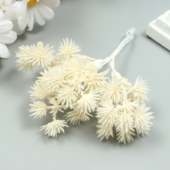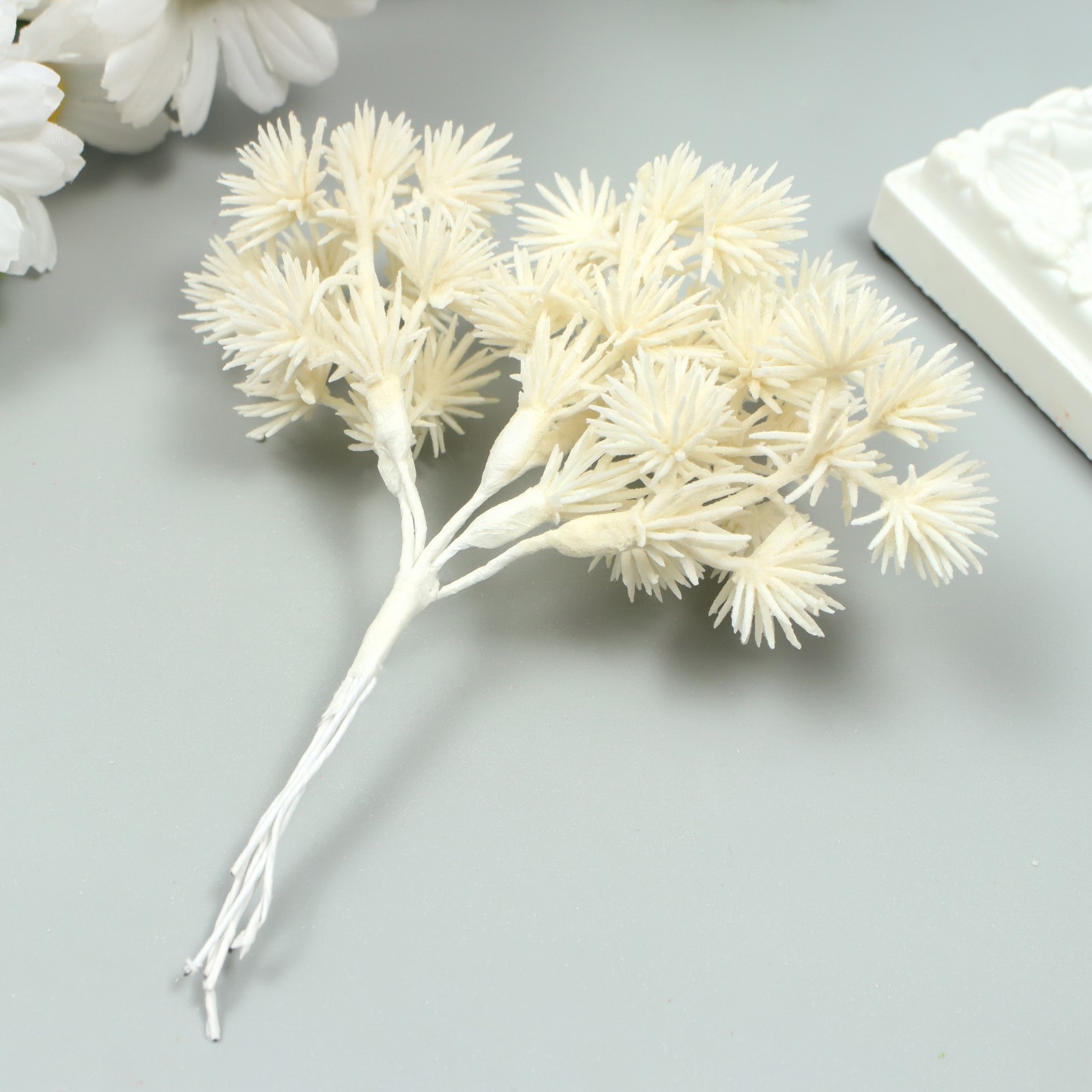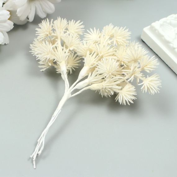 Искусственное растение "Еловые шарики" станет идеальным дополнением для вашего творческого процесса. В составе букета насчитывается 6 веточек, выполненных в нежном белом цвете, высота каждой веточки составляет 14 см. Пакет содержит 10 штук, что позволяет использовать их для создания разнообразных композиций и декора в интерьере.
