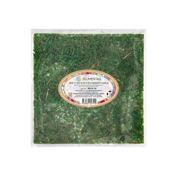Лист из натурального высушенного мха "Blumentag" BKM-20 на подложке, применяется при создании инсталляций в стиле "Гарденинг" , во флористике, в цветочных композициях, при создании топиариев.