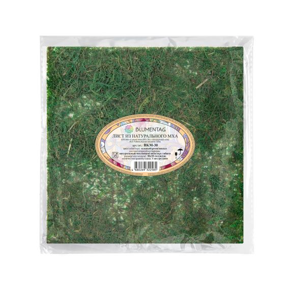 Лист из натурального высушенного мха "Blumentag" BKM-30 на подложке, применяется при создании инсталляций в стиле "Гарденинг" , во флористике, в цветочных композициях, при создании топиариев.