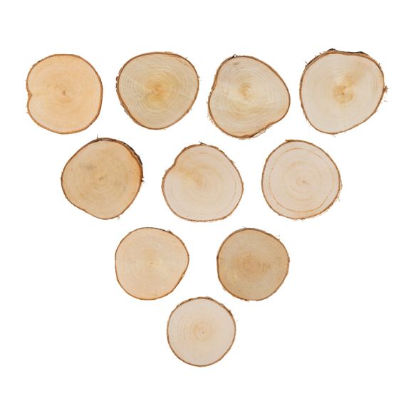 Срезы изготовлены из натуральных материалов. Их можно использовать как декоративный элемент во флористике. Срезы поддаются декорированию любыми способами: от декупажа и росписи до резьбы и выжигания. Также к ним применима техника браширования, т.е обжига. Отшлифованы с одной стороны.