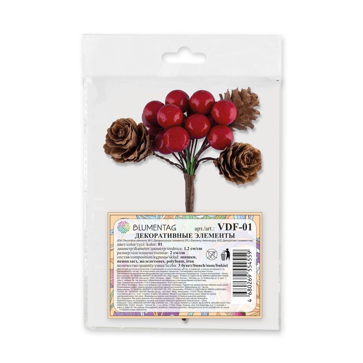 Blumentag Элементы декоративные VDF-01 1.2см Букет из ягод калины и шишек