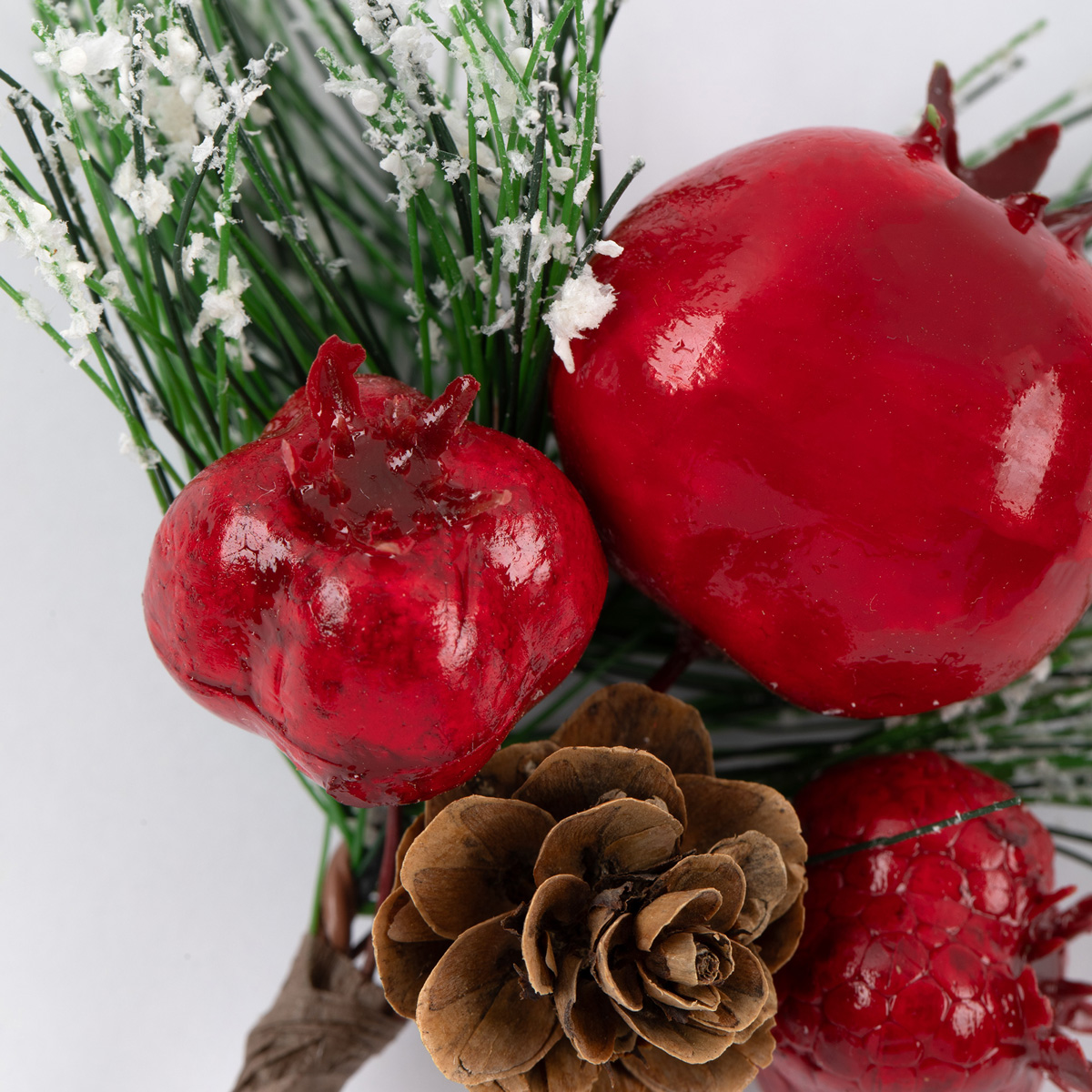Декоративная веточка с имитацией инея "Blumentag" VDF-127 используются во флористике, в композициях из искусственных цветов, в изготовлении новогодних венков, в топиариях, в декоре интерьера, оформлении подарков. Заснеженная искусственная веточка прекрасно подойдет для создания осенней или зимней поделки. Основание из гибкой проволоки искусственной веточки обернуто флористической лентой, на веточке расположены декоративные гранаты и шишка, искусственная хвоя.