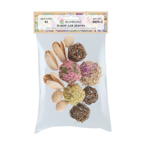 Использование набора природных материалов "Blumentag" BRW-2 для декорирования и флористики позволяет создать стильные и функциональные элементы декора, которые будут радовать глаз и наполнять помещение приятным ароматом.