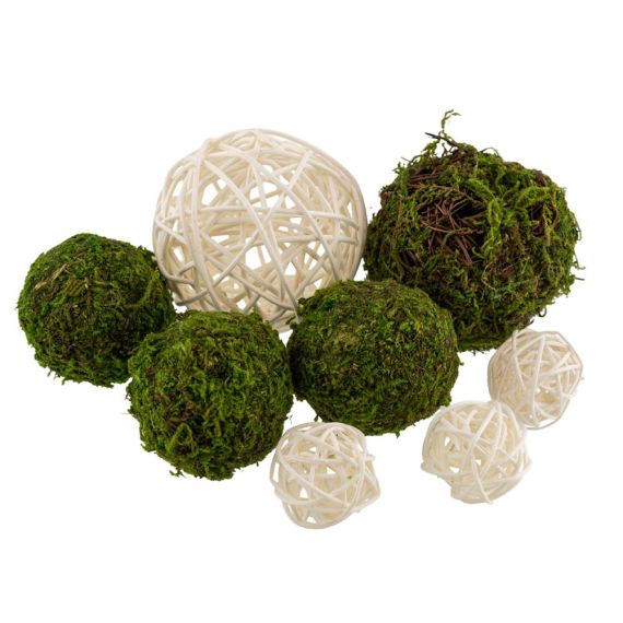 В набор шаров для декора "Blumentag" BRS-2 входят шары из ротанга и высушенной травы разных диаметров.