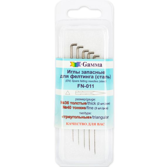 Gamma Иглы ручные для валяния (фелтинга) FN-011 №36 запасные грубые №40 тонкие 5шт