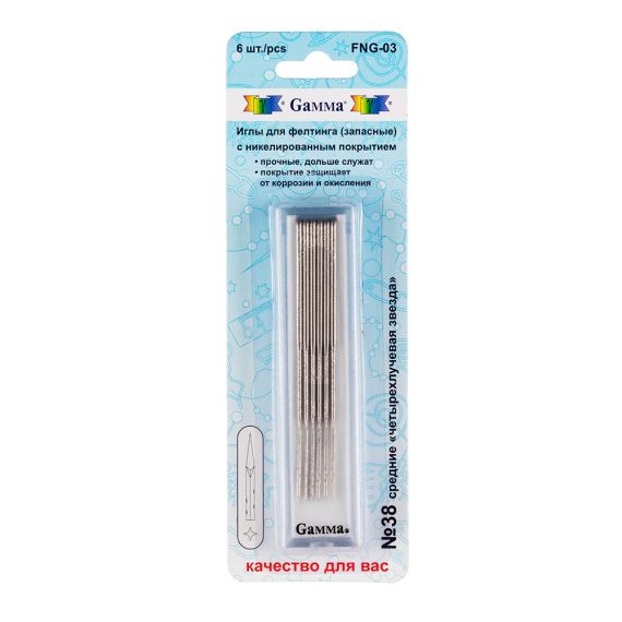 Gamma Иглы ручные для валяния (фелтинга) FNG-03 №38 запасные 6шт