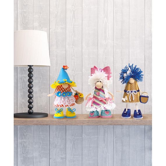 Новые модели в серии СОЗДАЙ КУКЛУ лесные жители - гномики. Милые, очаровательные, хорошо дополняют весеннюю коллекцию фей. Просты в сборке, все заготовки даны в готовом виде, самим не нужно ничего выкраивать. Детали крепятся на гвоздики-булавки и двусторонний скотч, что очень удобно и безопасно. Соберите всю коллекцию, желаем приятного времяпрепровождения!