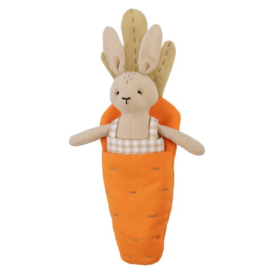 Небольшая игрушка-зайка легко помещается в кармашек-морковку. Такая игрушка может быть замечательным другом для ребенка. Ее можно рассматривать, одевать, брать с собой в поездки, кормить и укладывать спать. Кармашек послужит отличной кроваткой или домиком для игрушки.