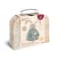 Игрушка выполняется по классической тедди-технологии - это технология изготовления игрушек с подвижным шплинтовым креплением лап и головы. В качестве наполнителя используется древесная стружка. Уникальной особенностью набора является мех из натуральной вискозы премиум-качества , с которым традиционно работают профессиональные теддисты. Набор имеет упаковку в виде винтажного чемодана с застежкой, а также комплектуется паспортом для игрушки и кожаной нашивкой hand made.